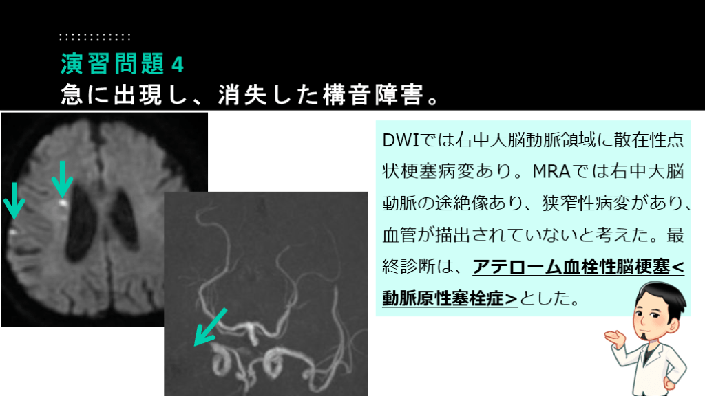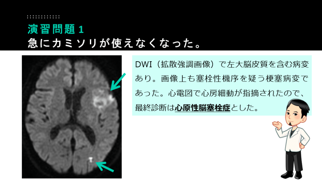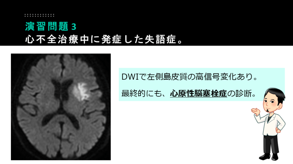 最終的にも、心原性脳塞栓症の診断。 演習問題 3