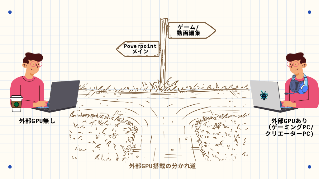 #20. ゲーム/ 動画編集 Powerpoint メイン 外部GPU無し 外部GPUあり (ゲーミングPC/ クリエーターPC) 外部GPU搭載の分かれ道