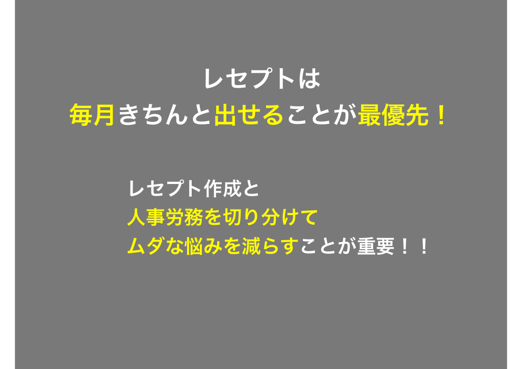 #10. レセプトは 毎月きちんと出せることが最優先! レセプト作成と 人事労務を切り分けて ムダな悩みを減らすことが重要!!