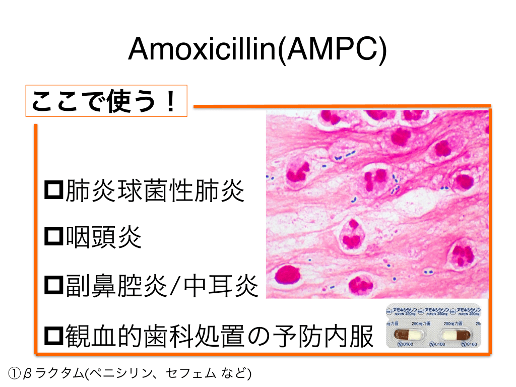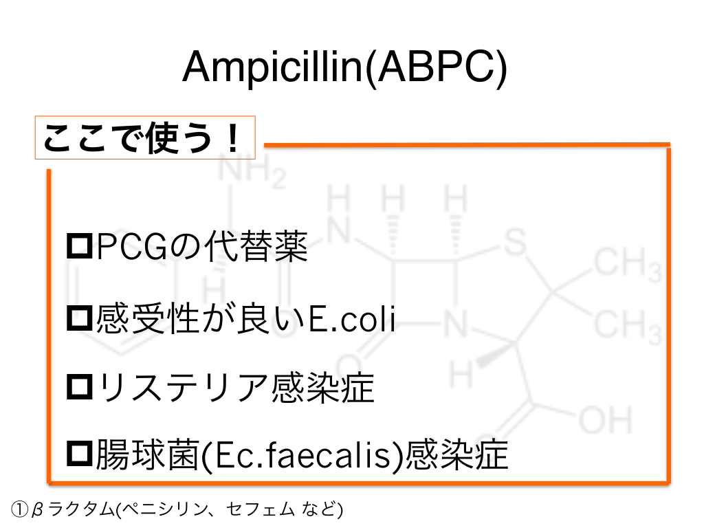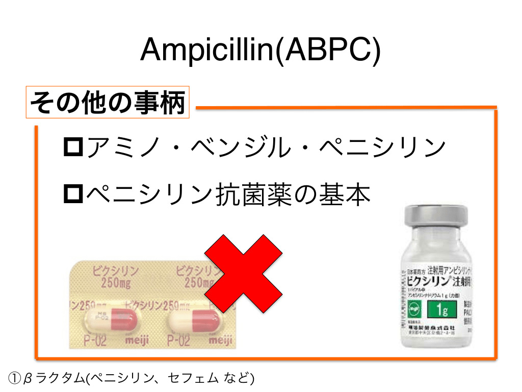 #9. Ampicillin(ABPC) どこで使う? ①βラクタム(ペニシリン、セフェム など)