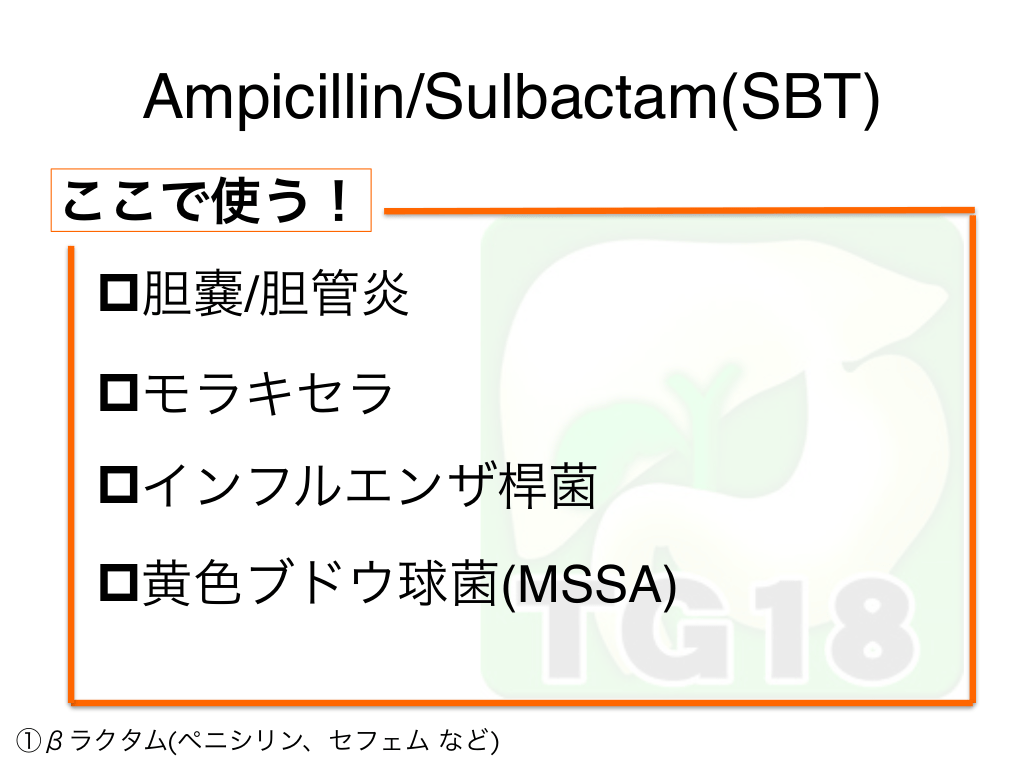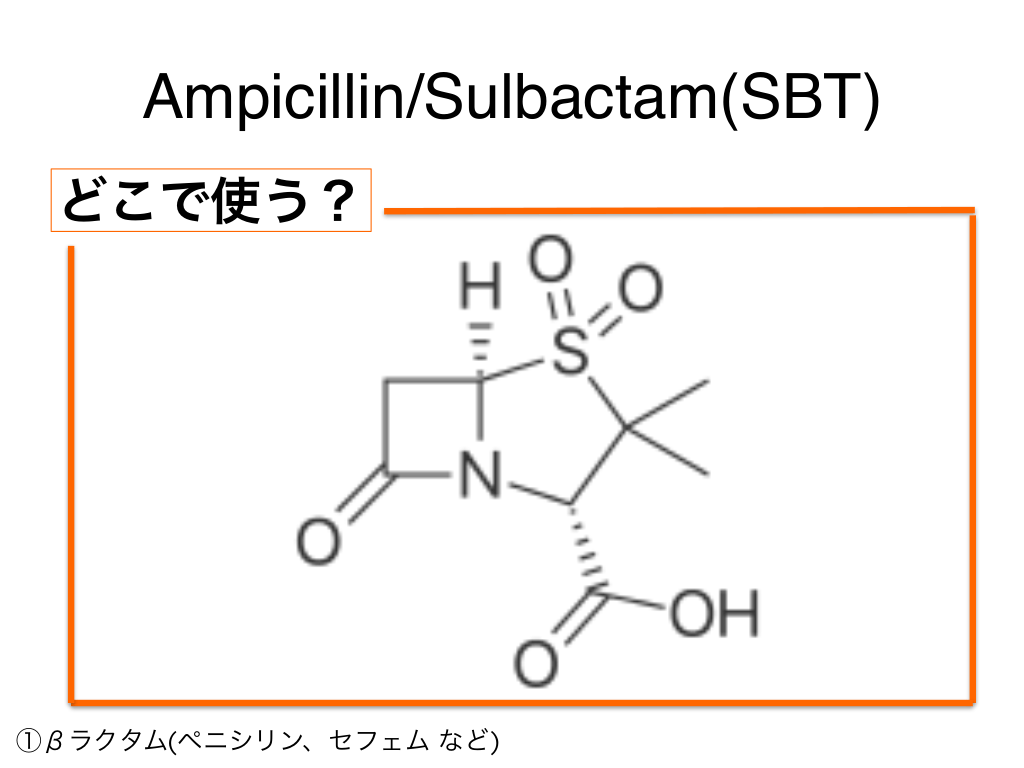 #14. Ampicillin/Sulbactam(SBT) どこで使う? ①βラクタム(ペニシリン、セフェム など)