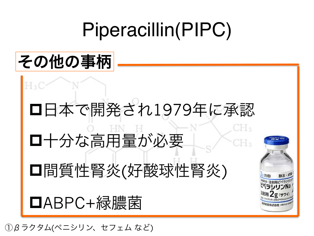 #21. Piperacillin(PIPC) どこで使う? ①βラクタム(ペニシリン、セフェム など)