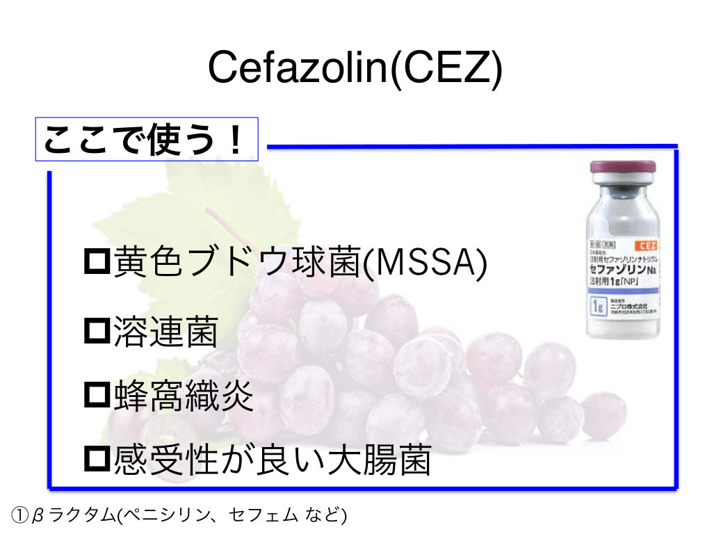 #31. Cefazolin(CEZ) どこで使う? ①βラクタム(ペニシリン、セフェム など)