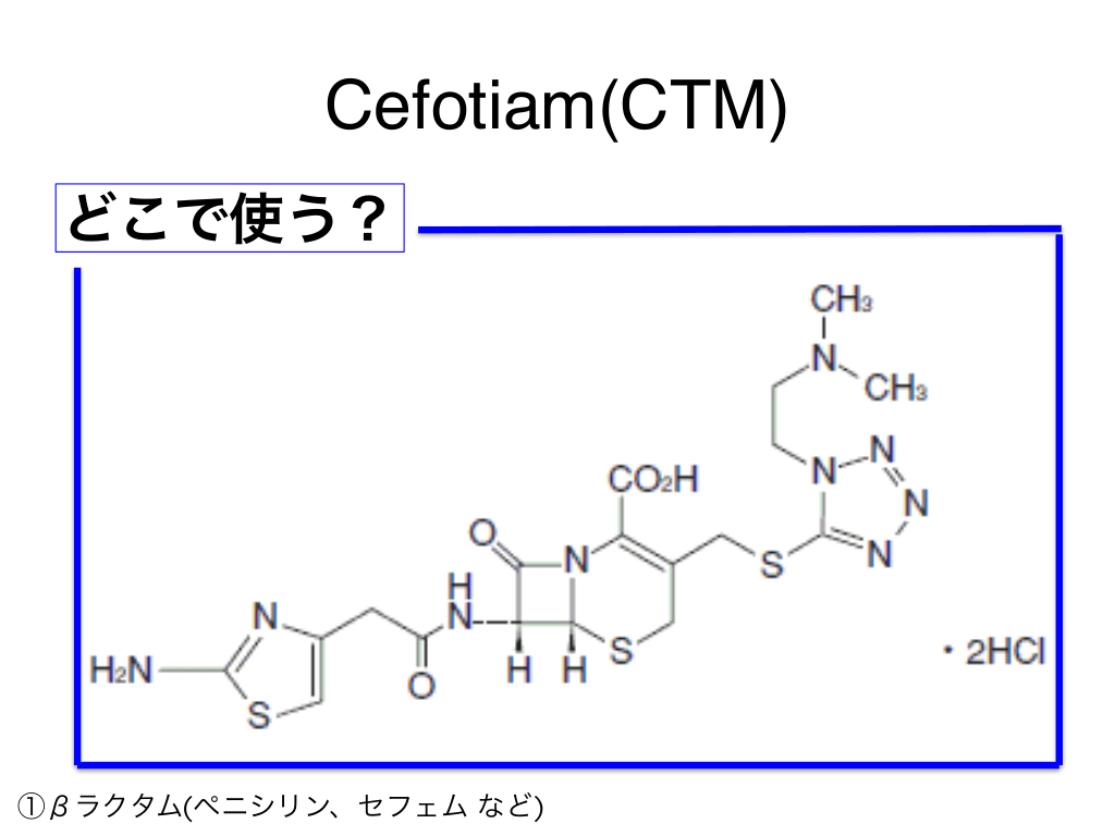 #38. Cefotiam(CTM) どこで使う? ①βラクタム(ペニシリン、セフェム など)