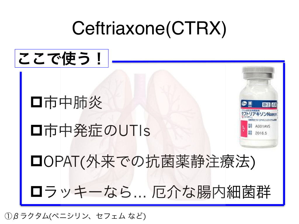#44. Ceftriaxone(CTRX) どこで使う? ①βラクタム(ペニシリン、セフェム など)