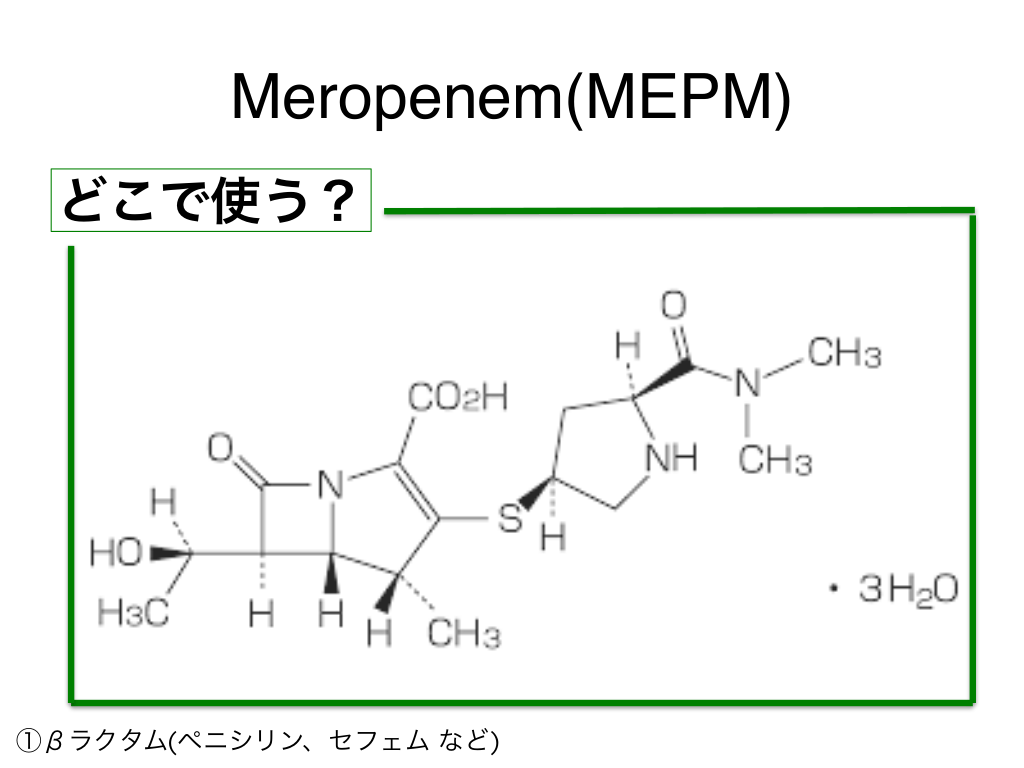 #57. Meropenem(MEPM) どこで使う? ①βラクタム(ペニシリン、セフェム など)