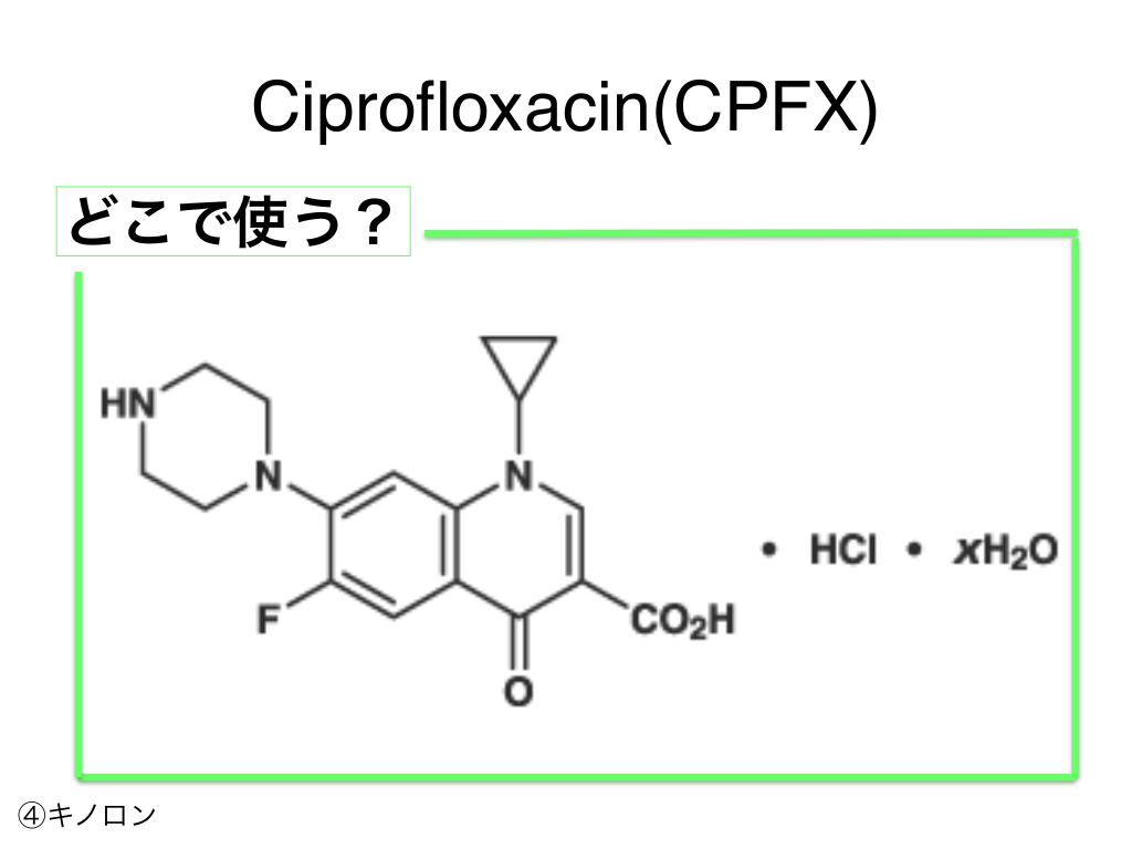 #73. Ciprofloxacin(CPFX) どこで使う? ④キノロン