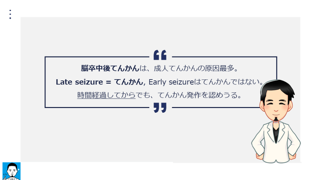 Late seizure = てんかん, Early seizureはてんかんではない。
