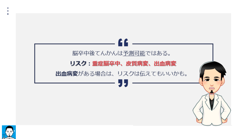 出血病変がある場合は、リスクは伝えてもいいかも。