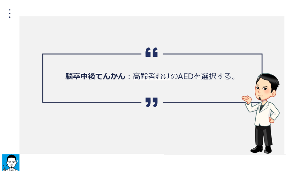 AED選択においては、「高齢者むけ」の特徴があってしかるべき。
