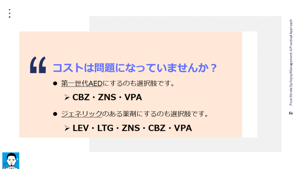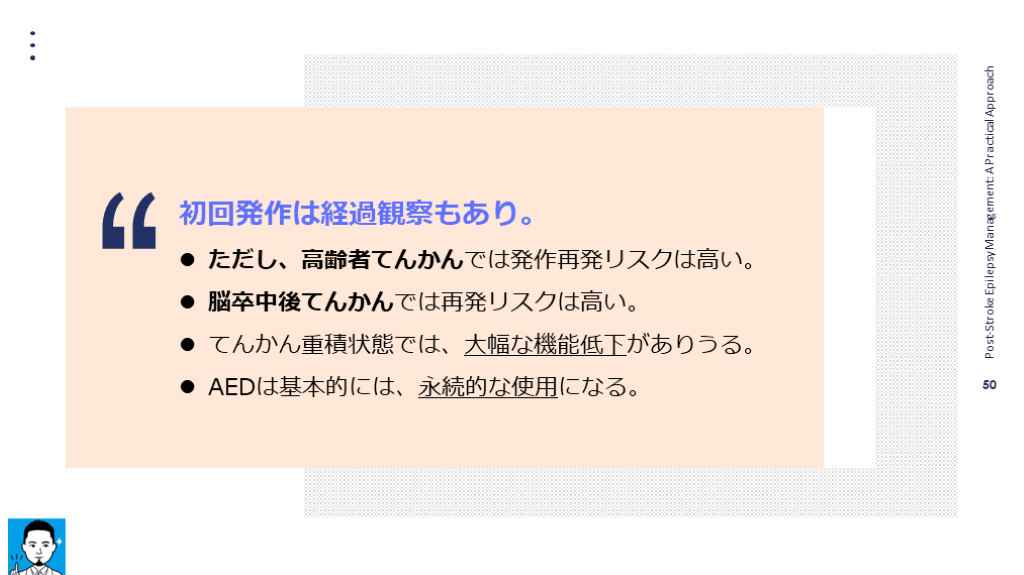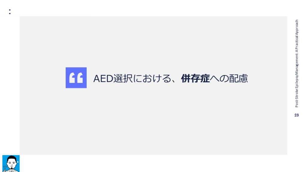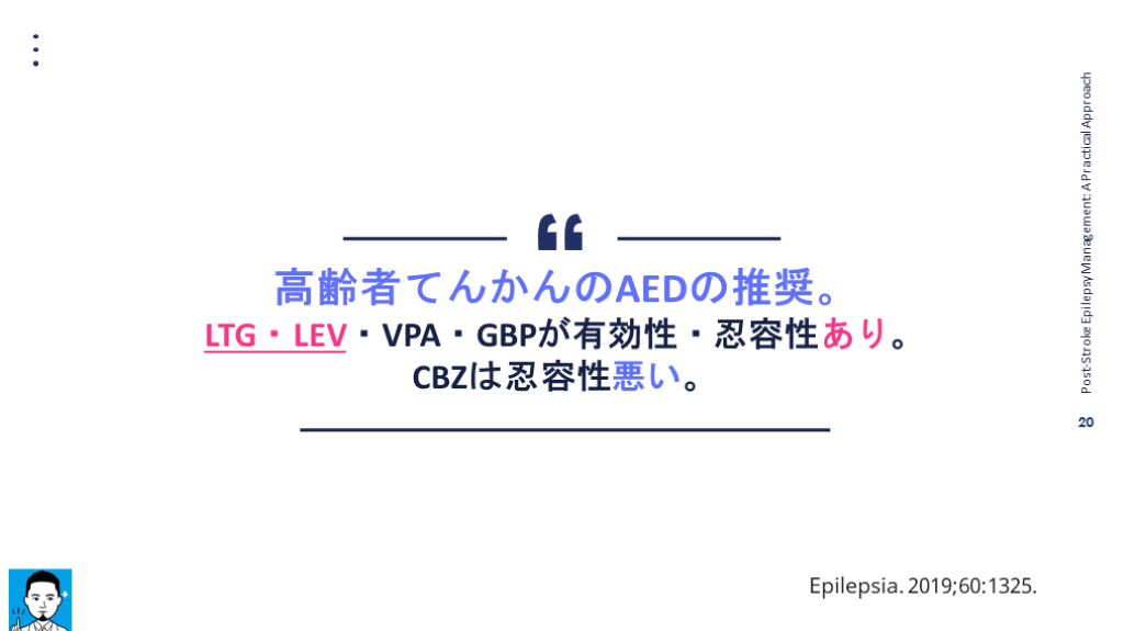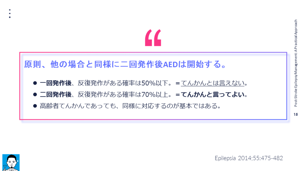 #12. 脳卒中後てんかん:高齢者むけのAEDを選択する。