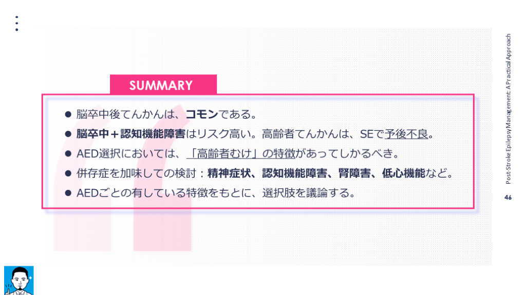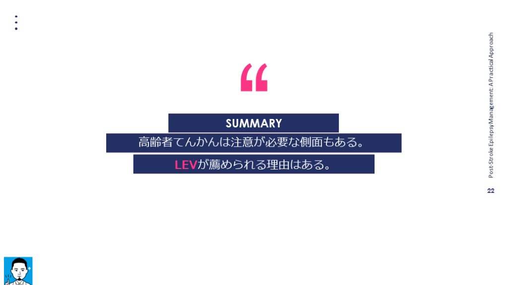 #22. SUMMARY 高齢者てんかんは注意が必要な側面もある。 LEVが薦められる理由はある。