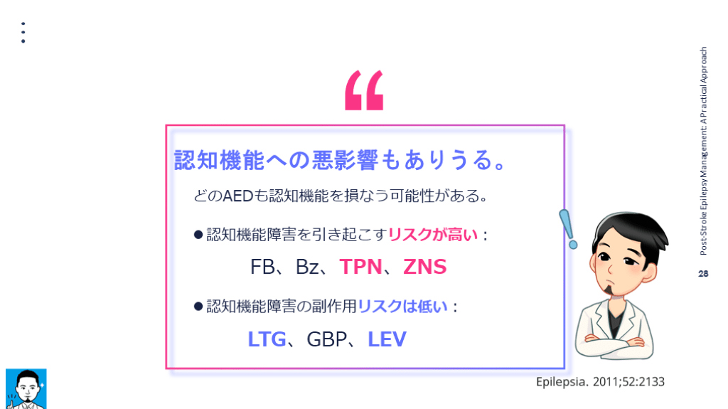 #28. 認知機能への悪影響もありうる。 どのAEDも認知機能を損なう可能性がある。