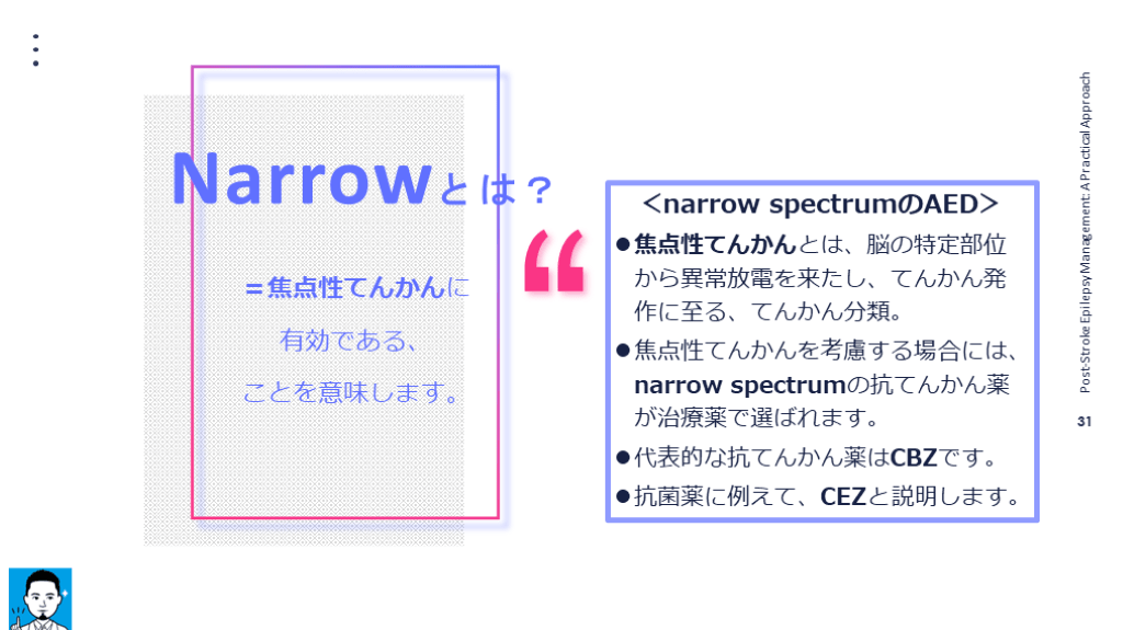 抗菌薬に例えて、CEZと説明します。 Narrowとは? =焦点性てんかんに