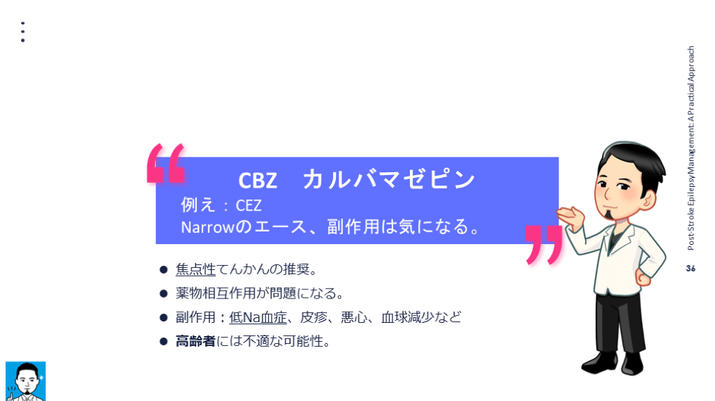 焦点性てんかんを考慮する場合には、narrow spectrumの抗てんかん薬が治療薬で選ばれます。