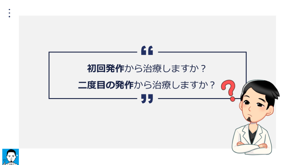 #17. 二回の発作で導入するか、初回発作で導入するか。