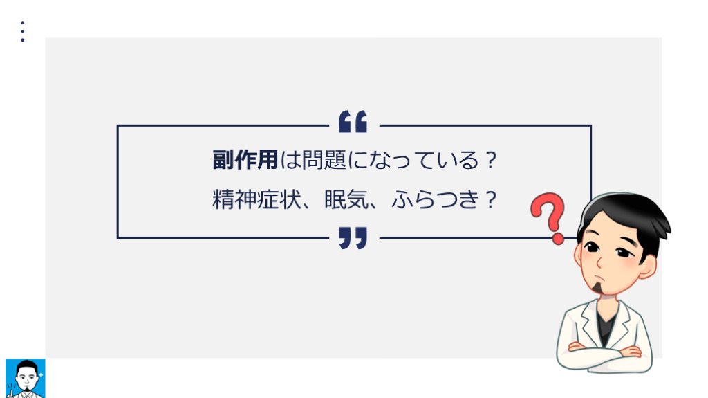 眠気が問題になりにくい薬剤でもあり、第1選択薬で眠気が問題になり、