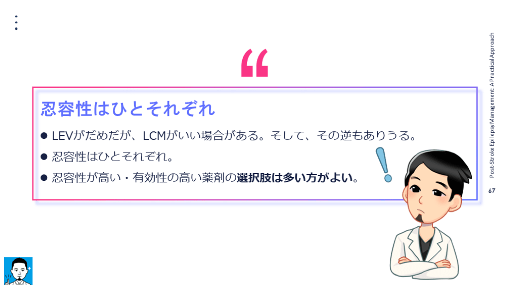LEV少量からの投与も検討。忍容性難しいなら少量(500mg/day)も一考。