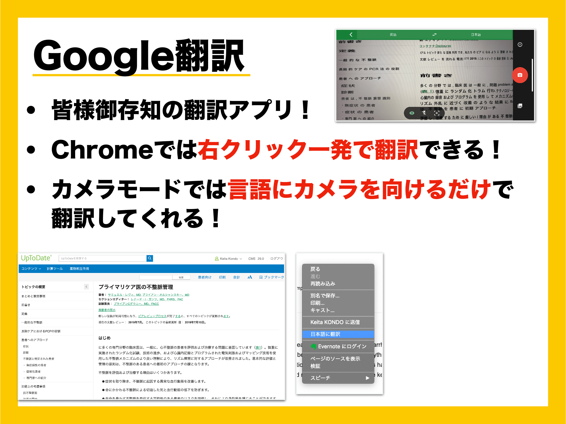 #20. Google翻訳 • • • 皆様御存知の翻訳アプリ! Chromeでは右クリック一発で翻訳できる! カメラモードでは言語にカメラを向けるだけで
