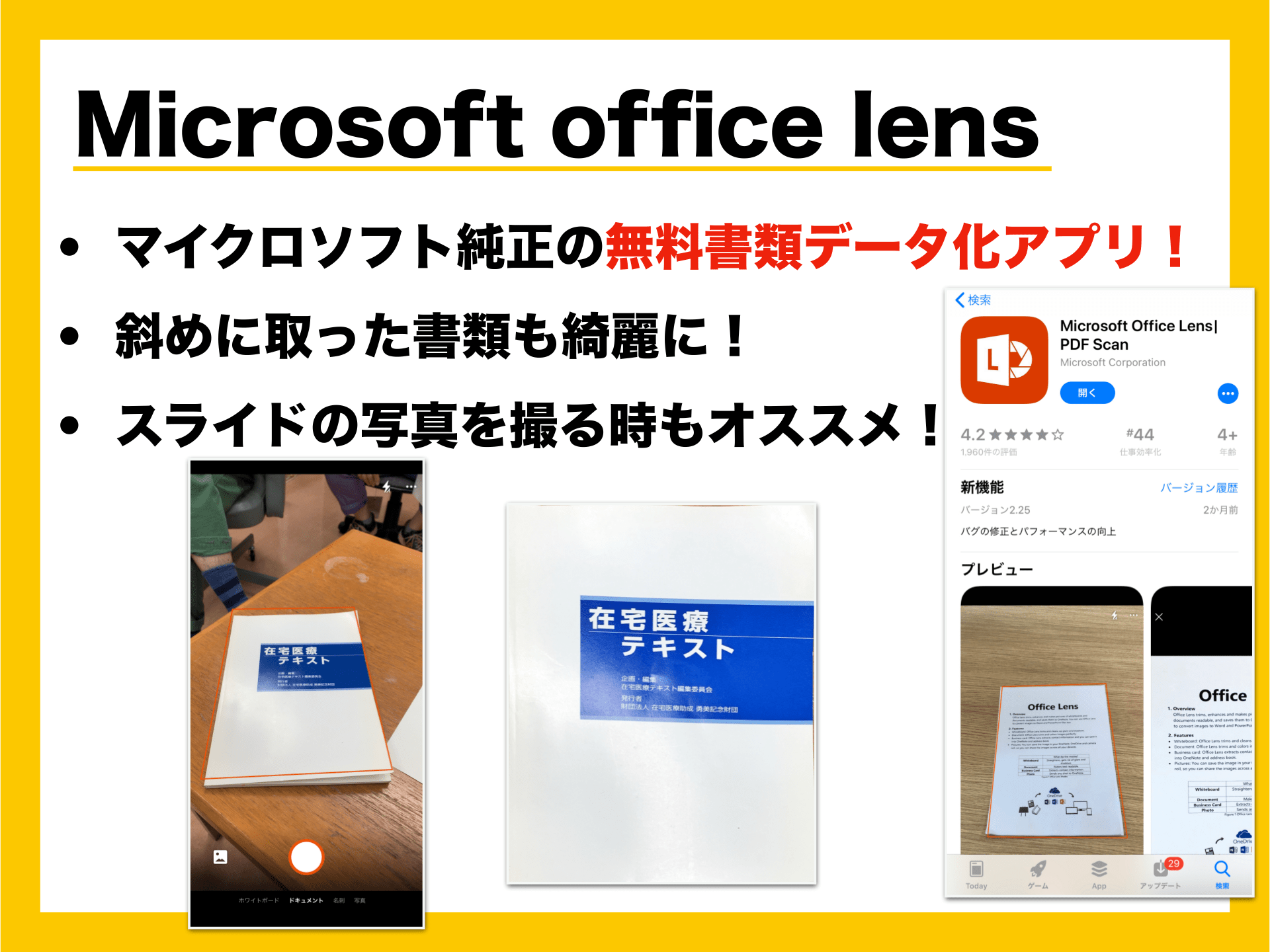 #21. Microsoft office lens • • • マイクロソフト純正の無料書類データ化アプリ! 斜めに取った書類も綺麗に! スライドの写真を撮る時もオススメ! Copyright FUJITA SOUSHIN PROGAM All Right Reserved.