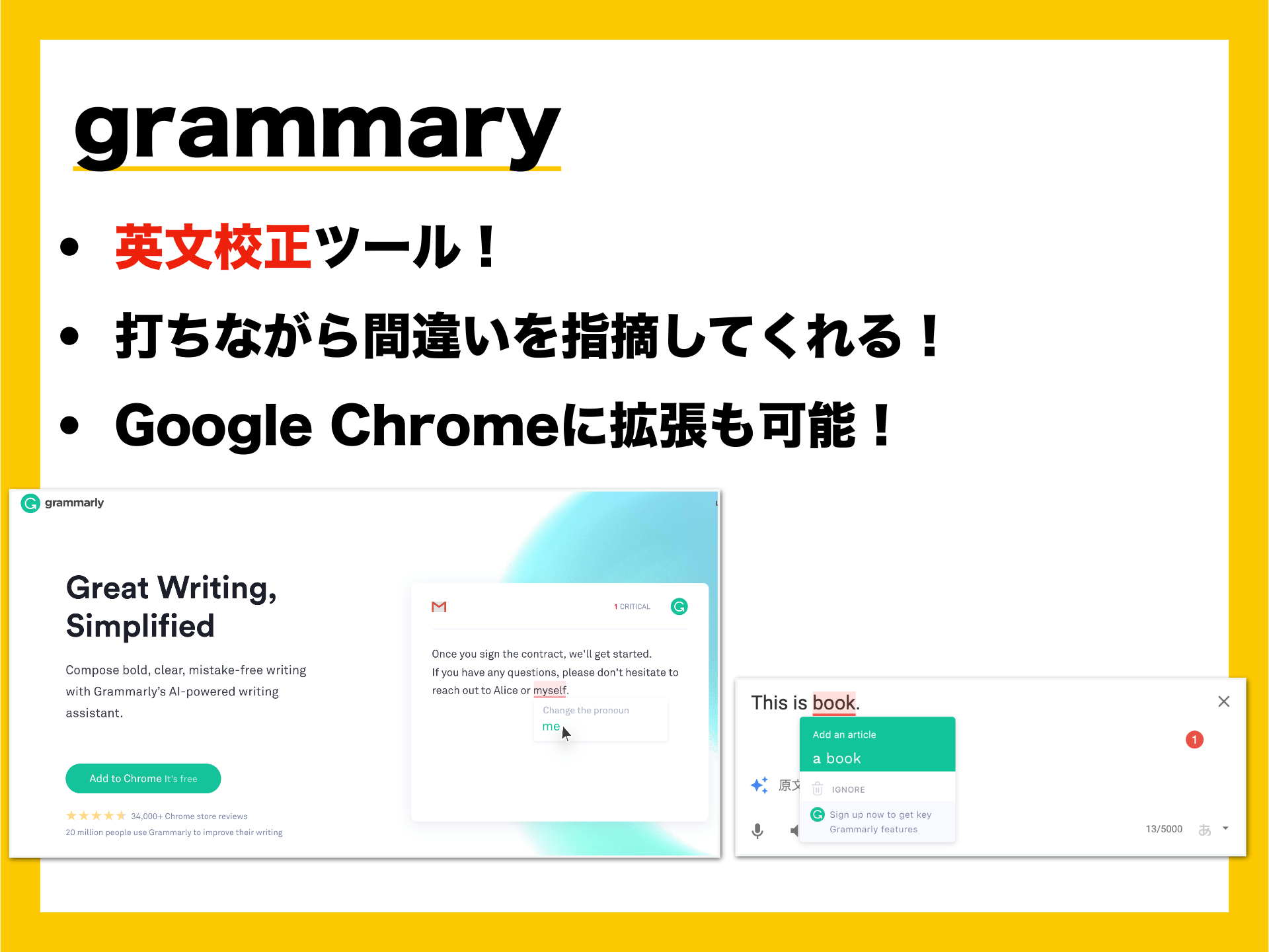 #23. grammary • • • 英文校正ツール! 打ちながら間違いを指摘してくれる! Google Chromeに拡張も可能! Copyright FUJITA SOUSHIN PROGAM All Right Reserved.