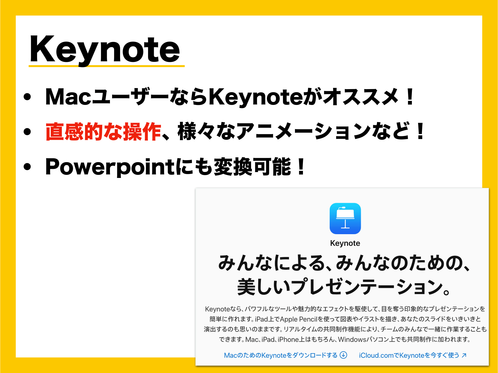 #34. Keynote • • • MacユーザーならKeynoteがオススメ! 直感的な操作、様々なアニメーションなど! Powerpointにも変換可能! Copyright FUJITA SOUSHIN PROGAM All Right Reserved.
