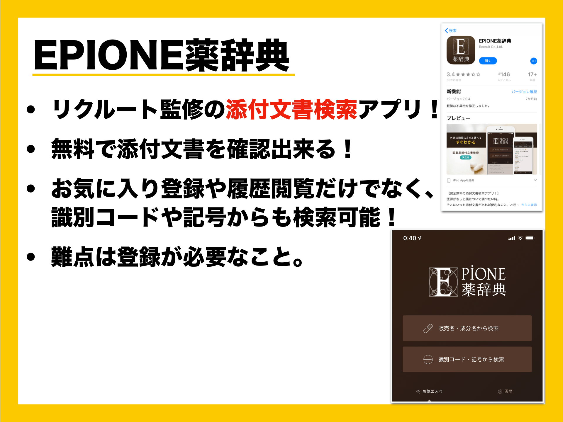 #7. EPIONE薬辞典 • • • • リクルート監修の添付文書検索アプリ! 無料で添付文書を確認出来る! お気に入り登録や履歴閲覧だけでなく、