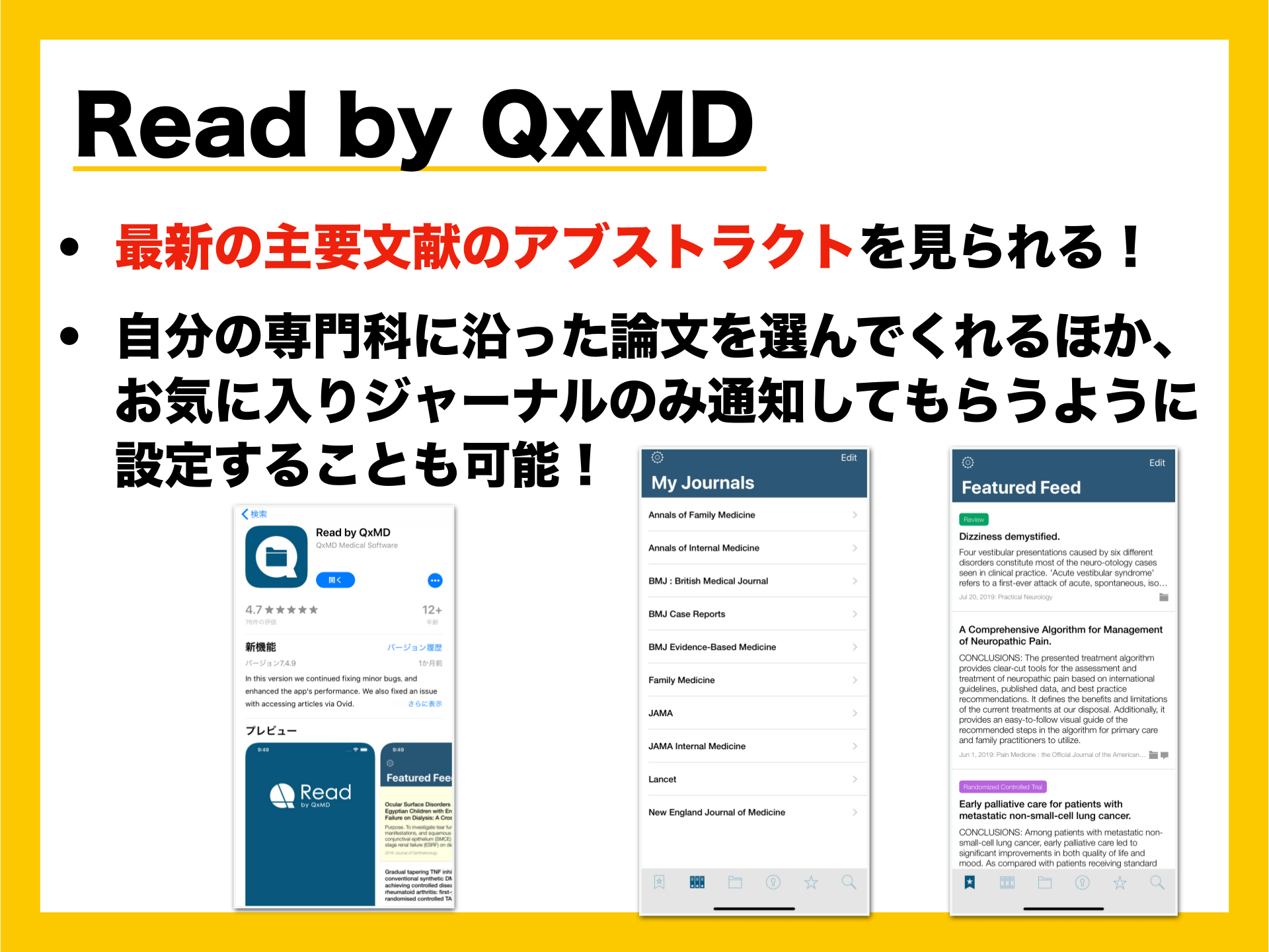 #9. Read by QxMD • • 最新の主要文献のアブストラクトを見られる! 自分の専門科に沿った論文を選んでくれるほか、 お気に入りジャーナルのみ通知してもらうように 設定することも可能! Copyright FUJITA SOUSHIN PROGAM All Right Reserved.