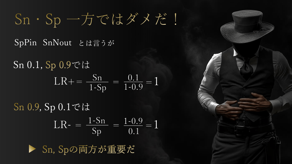 #26. Sn・Sp 一方ではダメだ! SpPin SnNout とは言うが Sn 0.1, Sp 0.9では Sn 0.9, Sp 0.1では Sn, Spの両方が重要だ