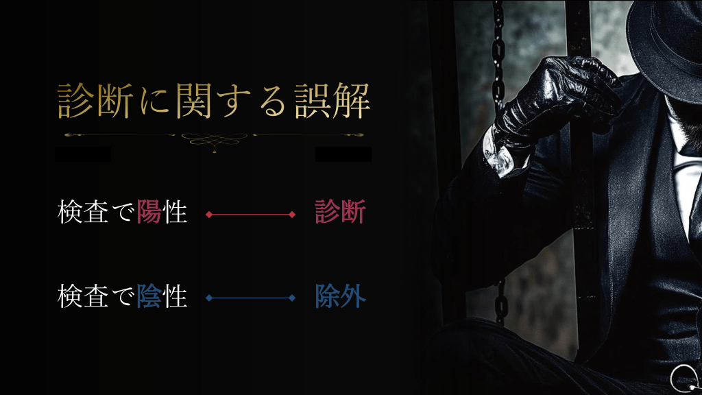 #3. 診断に関する誤解 検査で陽性 診断 検査で陰性 除外