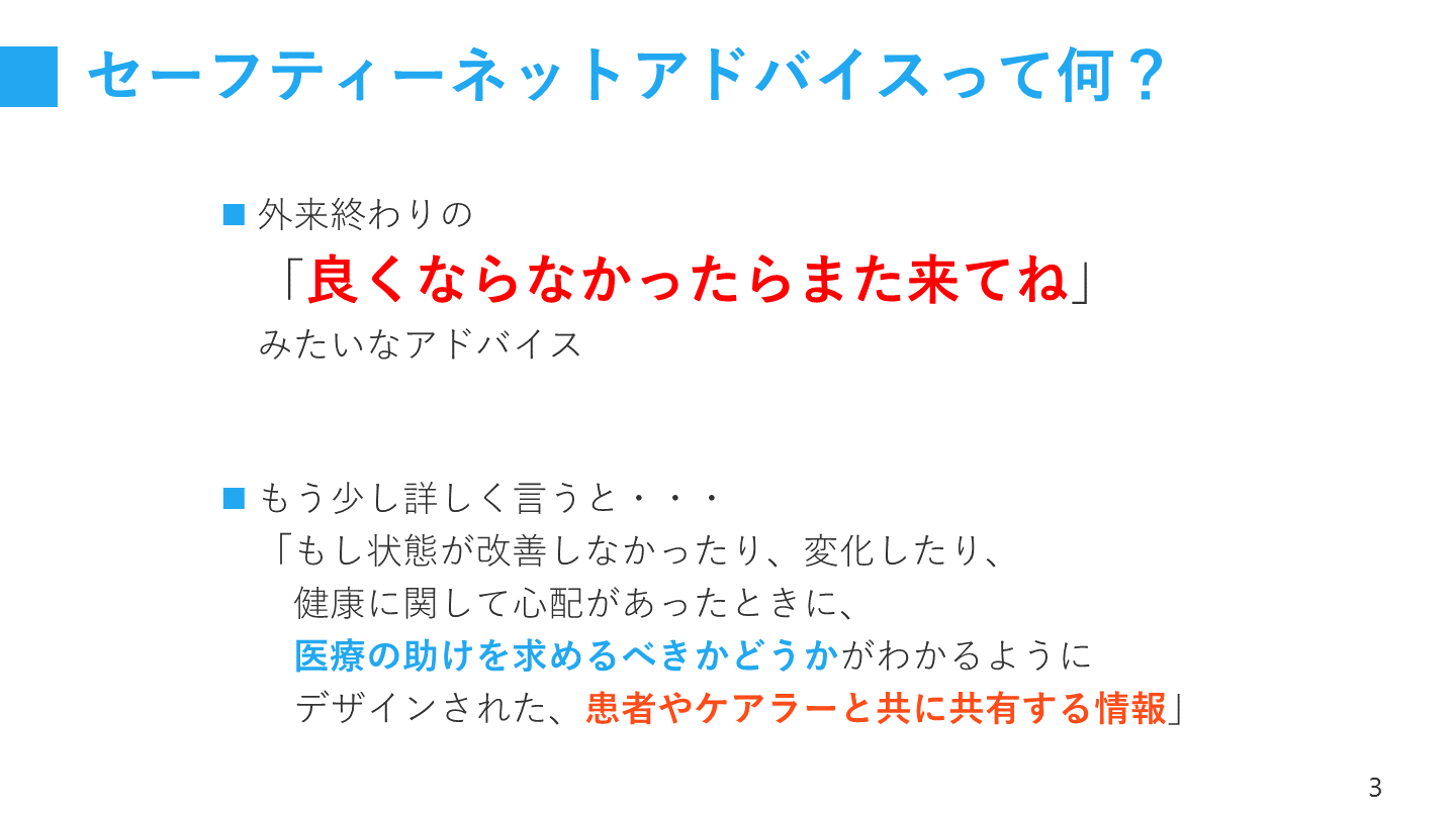 セーフティーネットアドバイスって何? 外来終わりの「良くならなかったらまた来てね」みたいなアドバイス