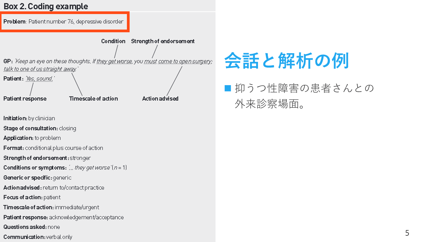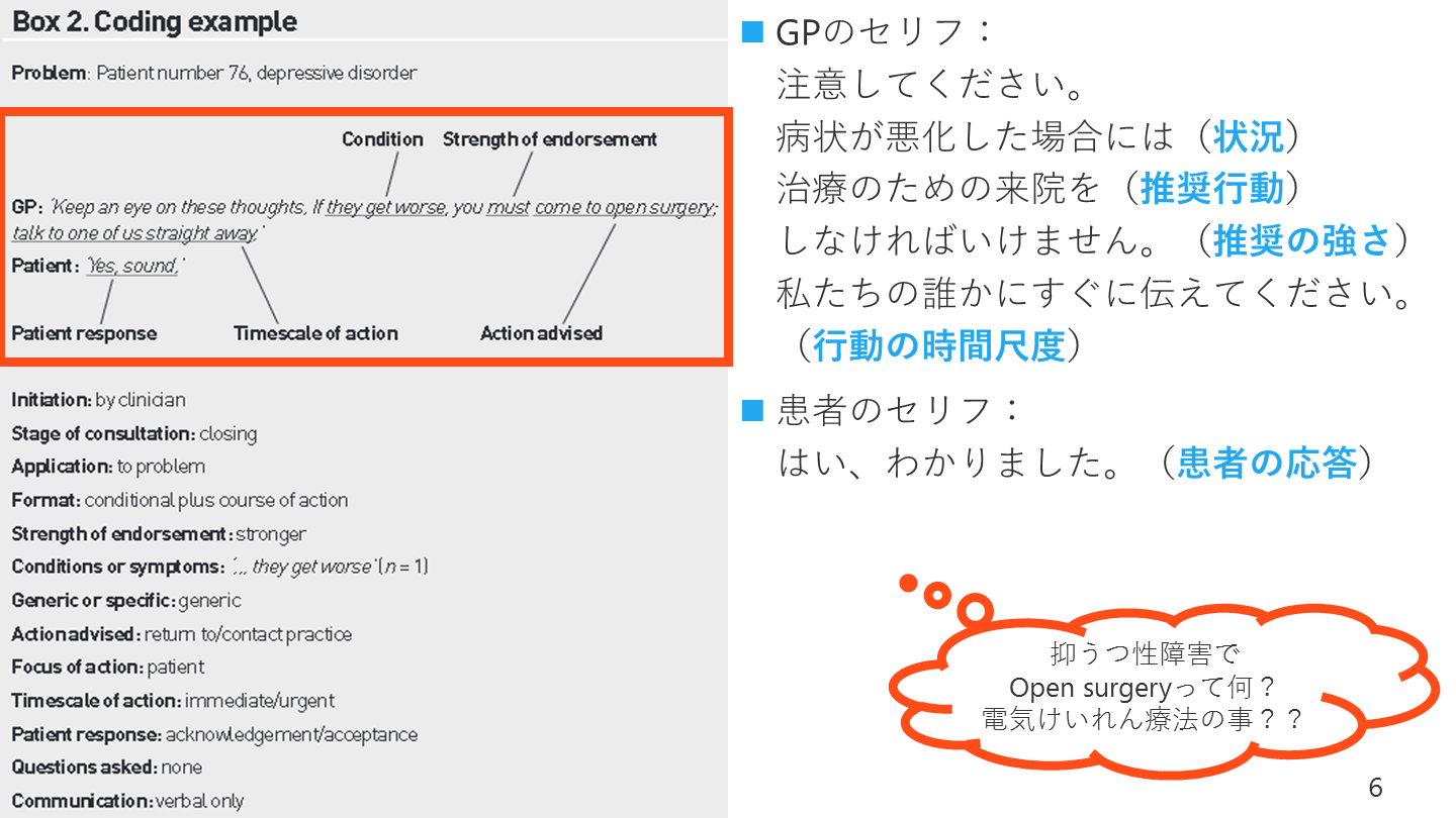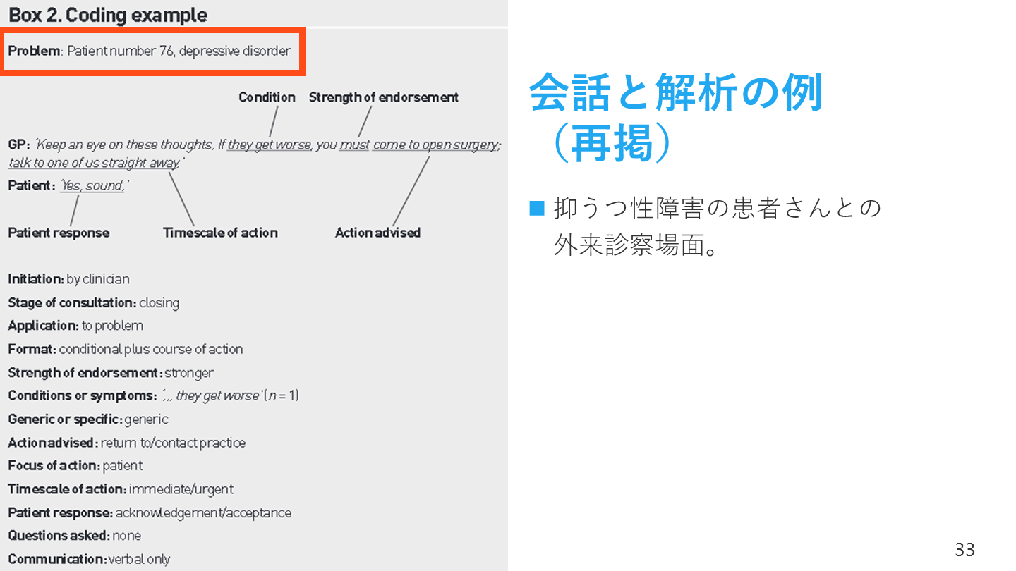 会話と解析の例 抑うつ性障害の患者さんとの外来診察場面。 #6.