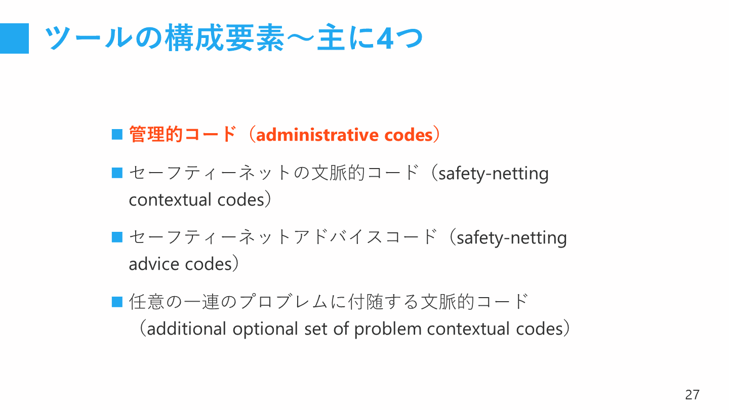ツールの構成要素~主に4つ 管理的コード(administrative codes)