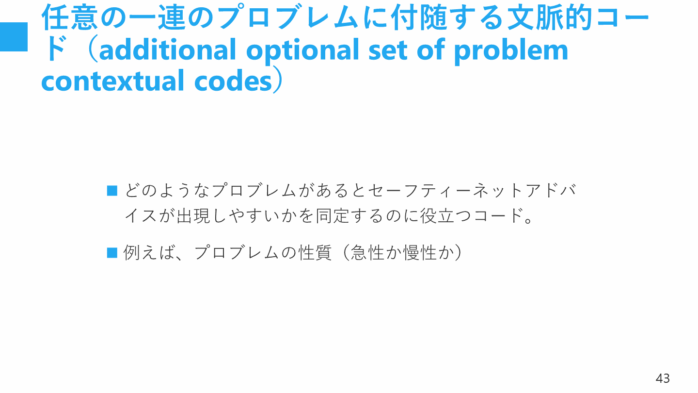 任意の一連のプロブレムに付随する文脈的コード(additional optional set of problem contextual codes) #43.