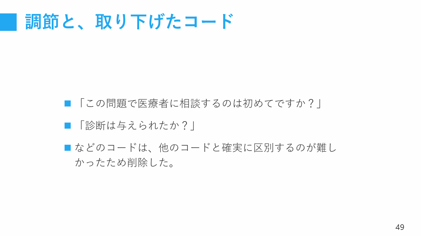 調節と、取り下げたコード 「この問題で医療者に相談するのは初めてですか?」