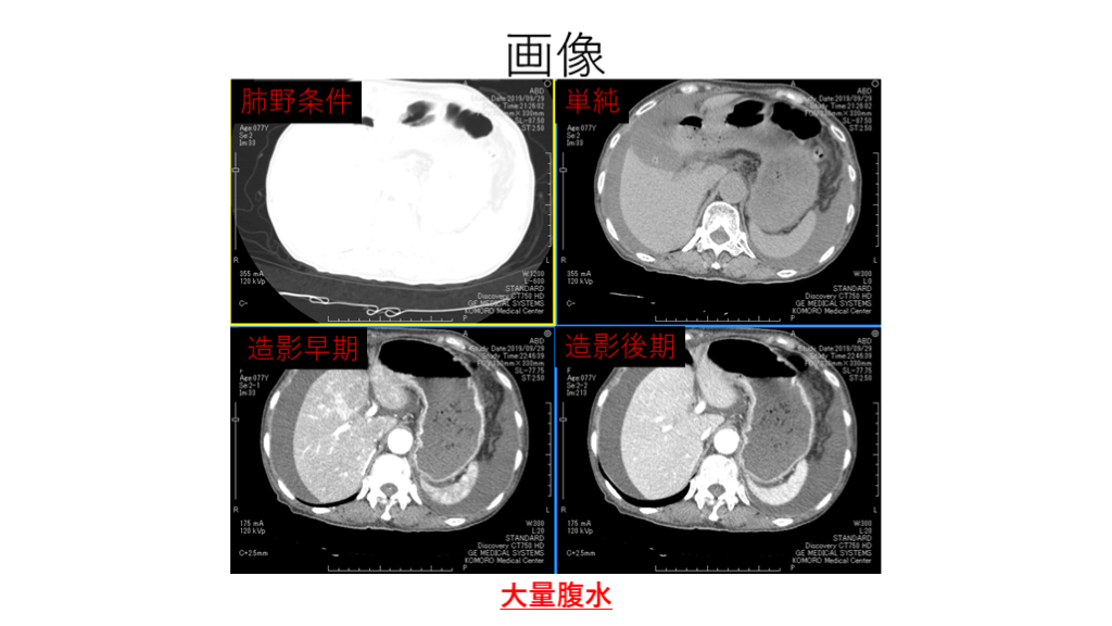 #6. 画像 大量腹水 肺野条件 造影後期 造影早期 単純