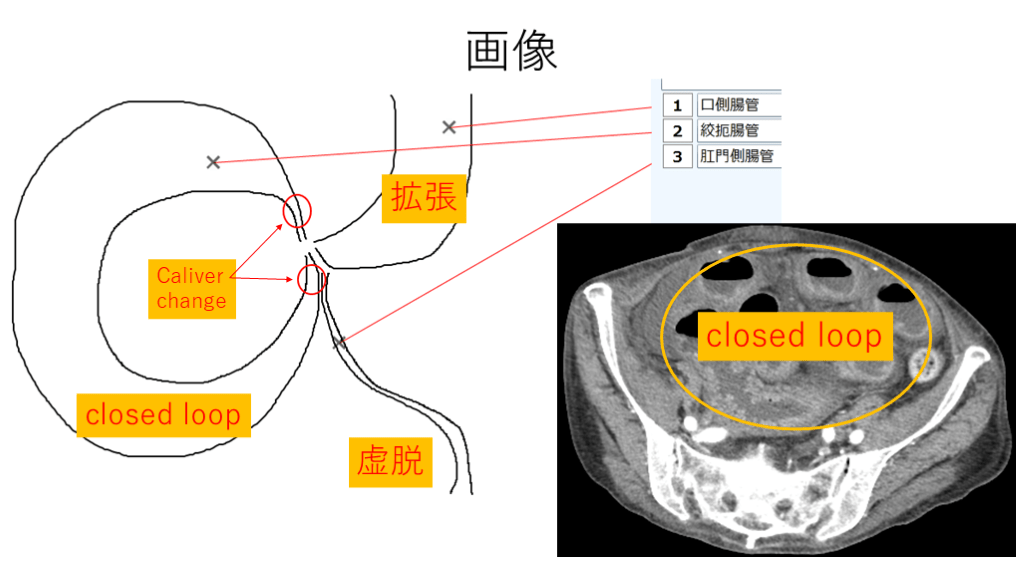 Ischemic 腸管虚血 (疑わしければ造影されている腸管と比較、早期後期の比較も)