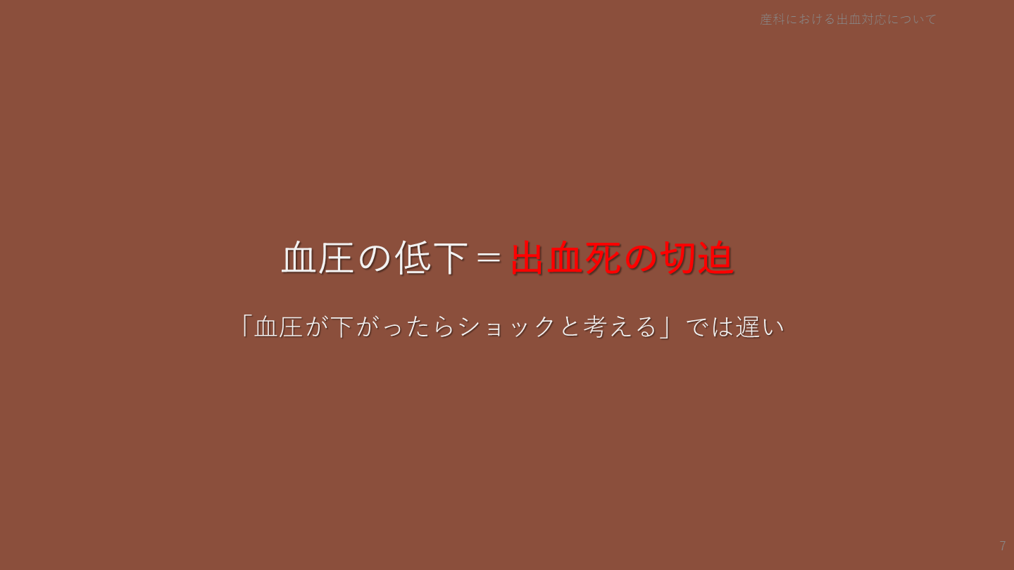 #7. 血圧の低下=出血死の切迫 「血圧が下がったらショックと考える」では遅い 産科における出血対応について 7