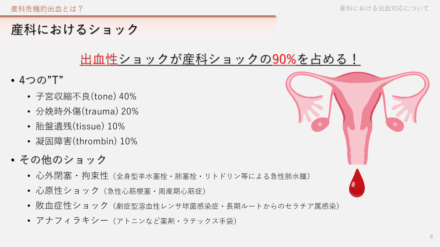 #8. 産科におけるショック 出血性ショックが産科ショックの90%を占める!