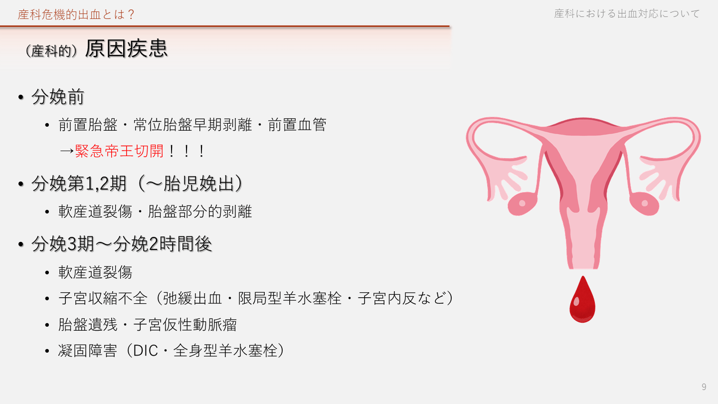 凝固障害(DIC・全身型羊水塞栓) 産科危機的出血とは? 産科における出血対応について 9