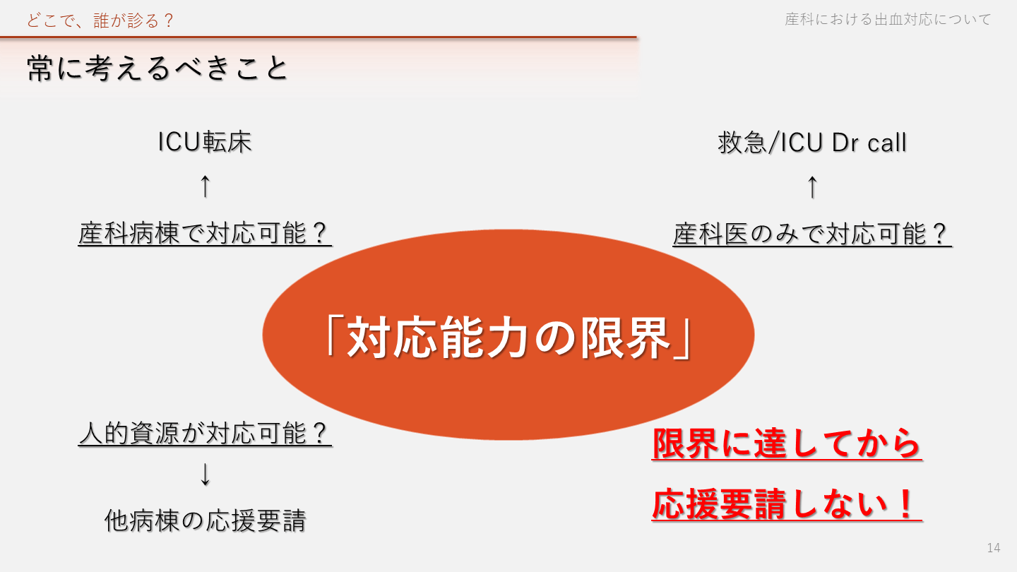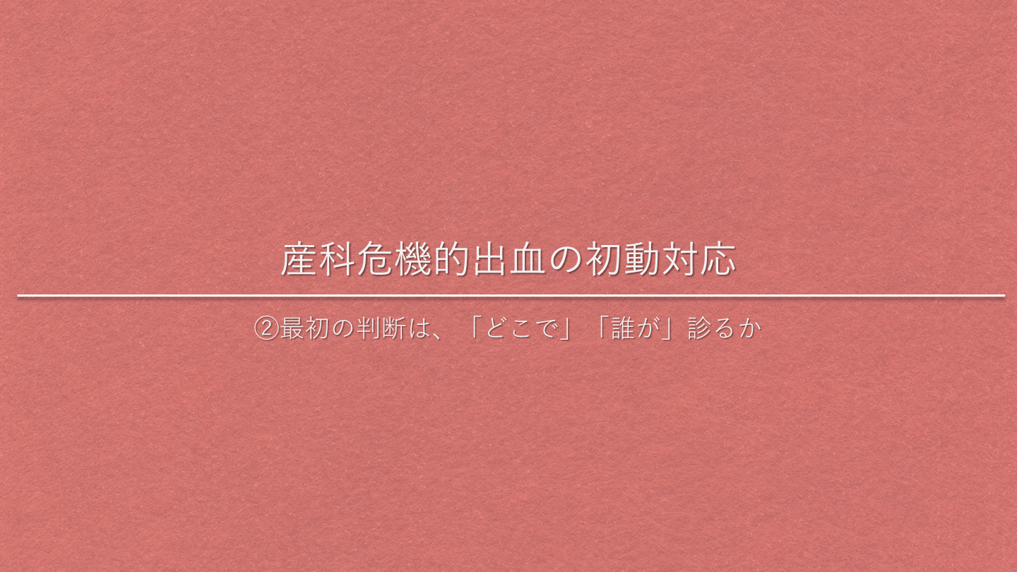 #13. 産科危機的出血の初動対応 ②最初の判断は、「どこで」「誰が」診るか