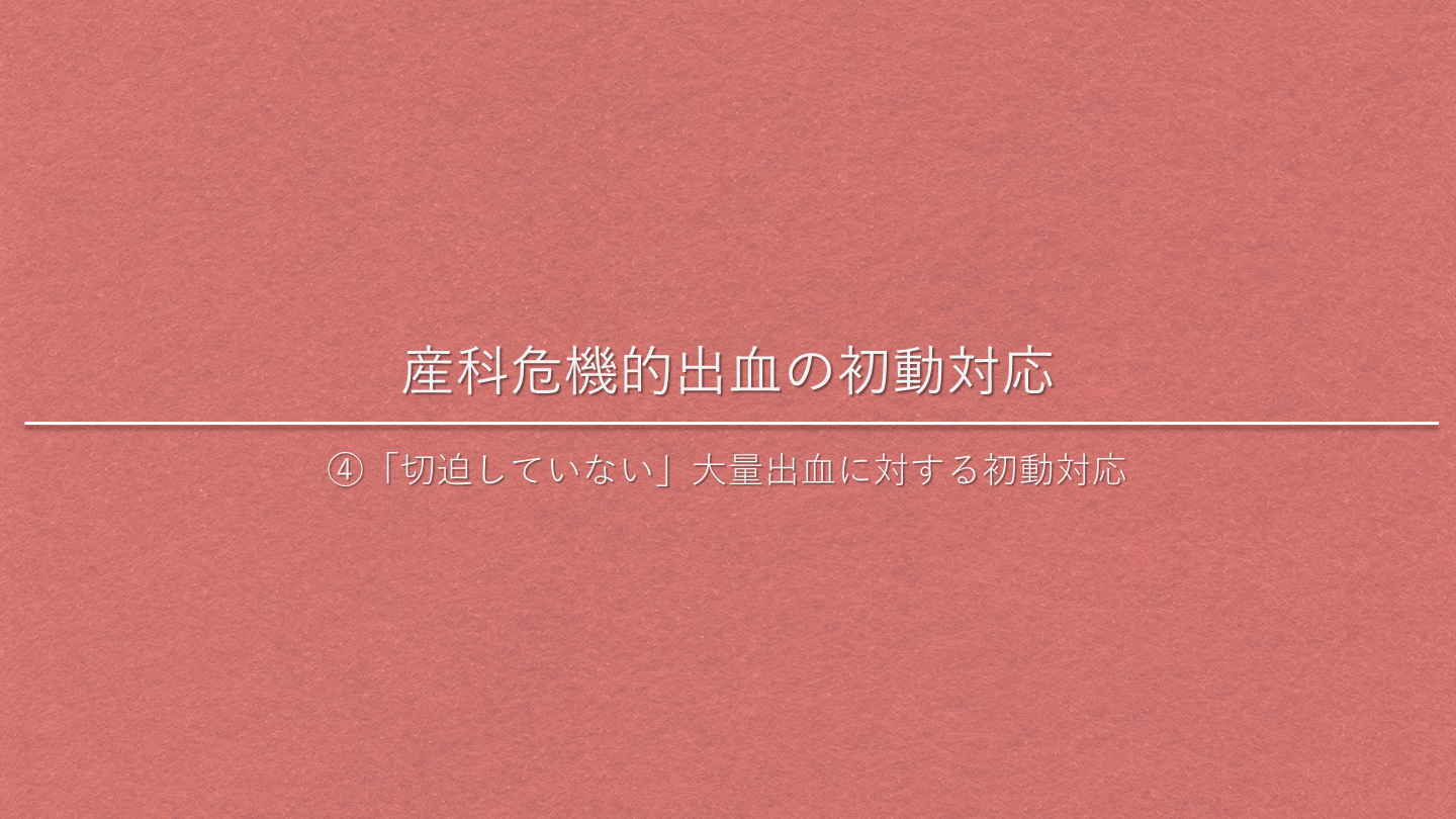 #22. 産科危機的出血の初動対応 ④「切迫していない」大量出血に対する初動対応