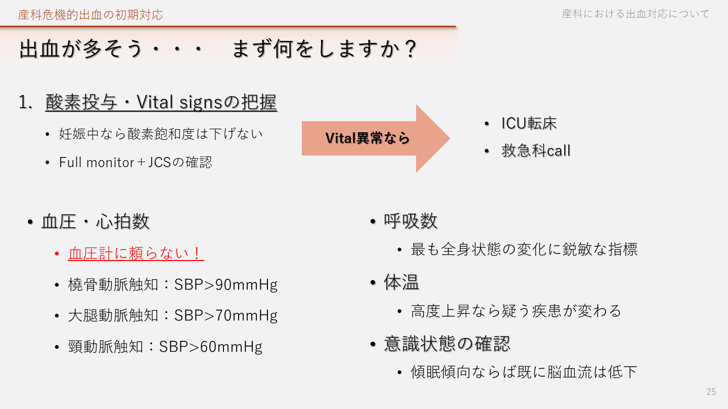 Full monitor+JCSの確認 産科危機的出血の初期対応 産科における出血対応について 25 ICU転床
