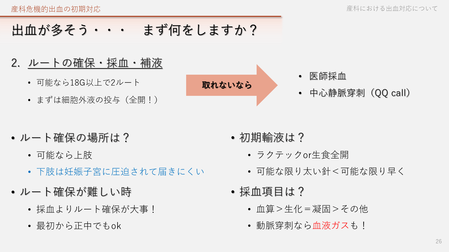 まずは細胞外液の投与(全開!) 産科危機的出血の初期対応 産科における出血対応について 26 取れないなら 医師採血