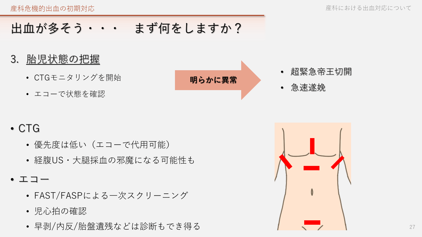 エコーで状態を確認 産科危機的出血の初期対応 産科における出血対応について 27 明らかに異常 超緊急帝王切開