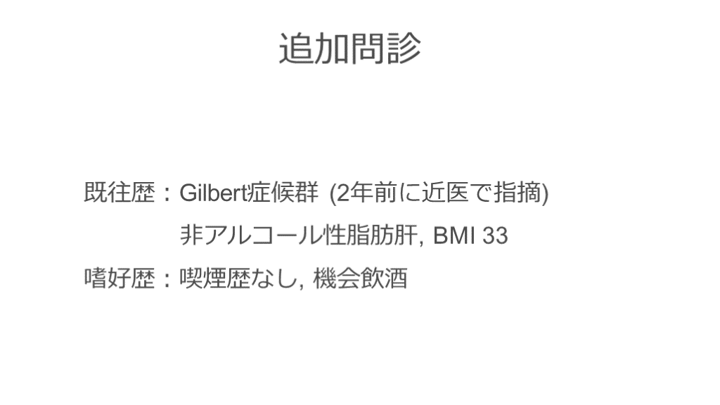 #4. 既往歴:Gilbert症候群 (2年前に近医で指摘)