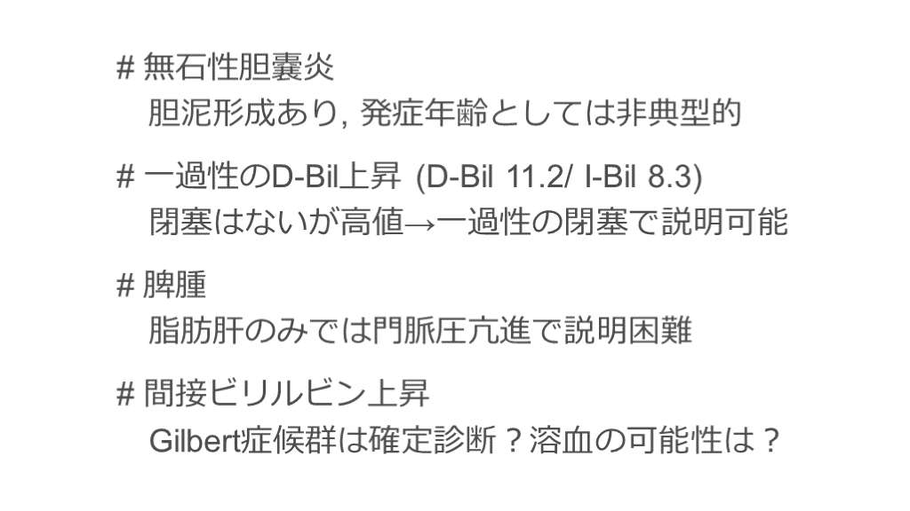 #21. # 無石性胆嚢炎# 一過性のD-bil上昇 (D-bil 11.2/ I-Bil 8.3)
