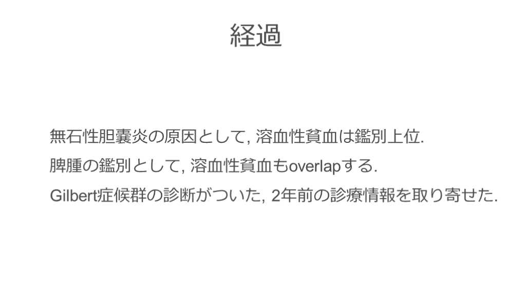 Gilbert症候群の診断がついた, 2年前の診療情報を取り寄せた. 経過