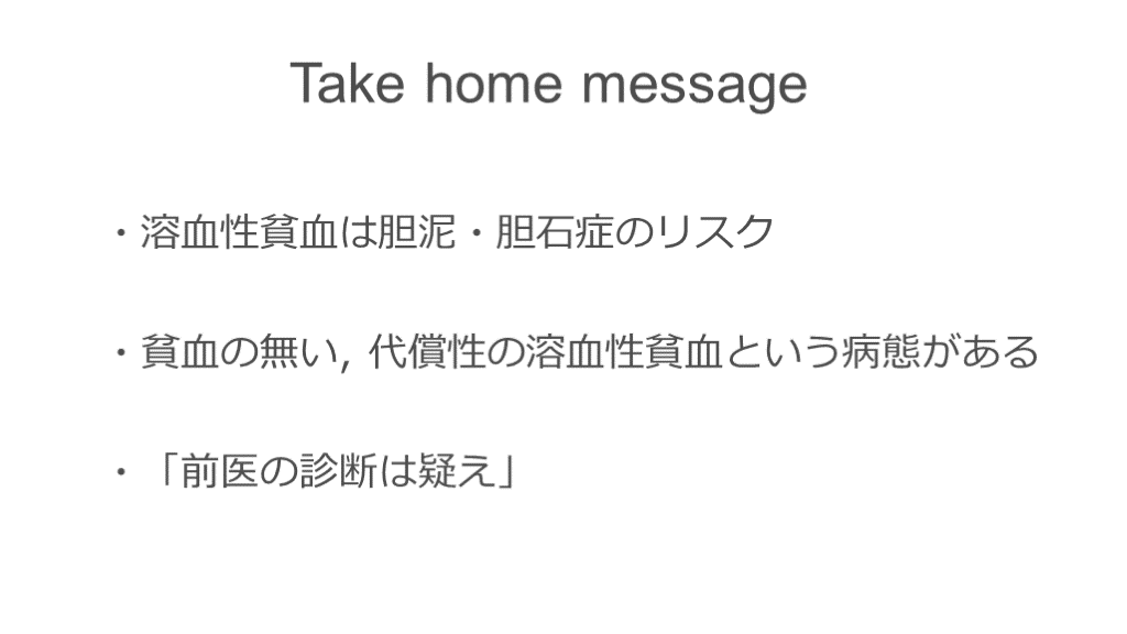 #39. ・溶血性貧血は胆泥・胆石症のリスク・貧血の無い, 代償性の溶血性貧血という病態がある