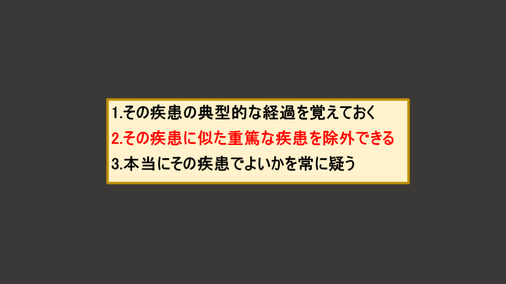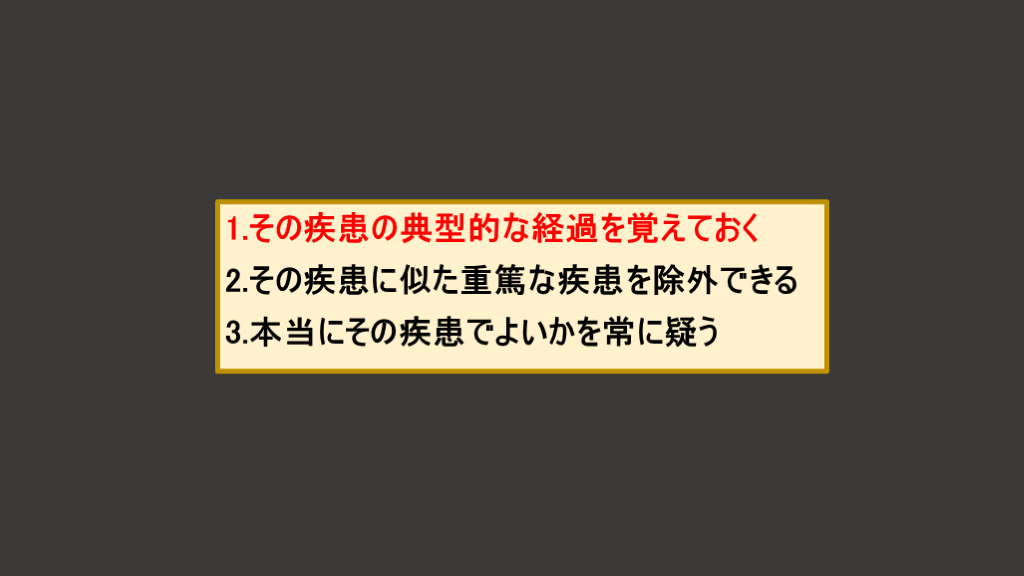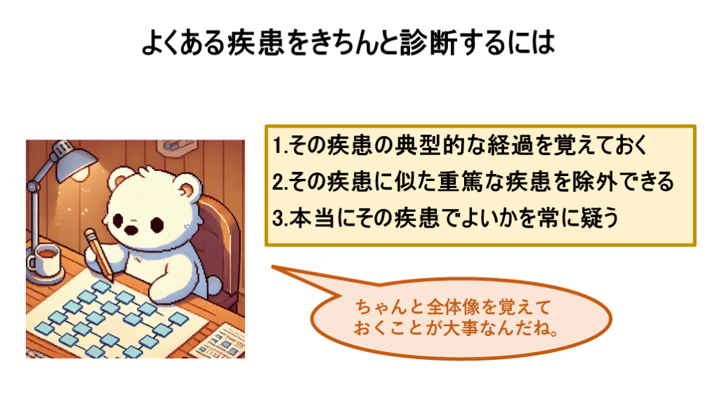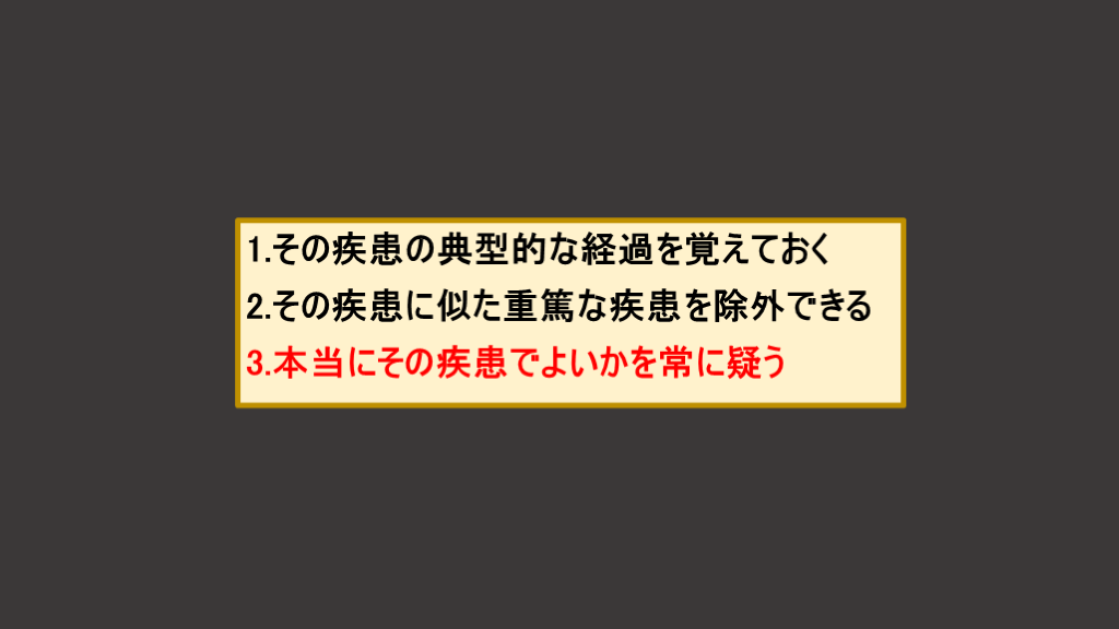3.本当にその疾患でよいかを常に疑う ちゃんと全体像を覚えておくことが大事なんだね。